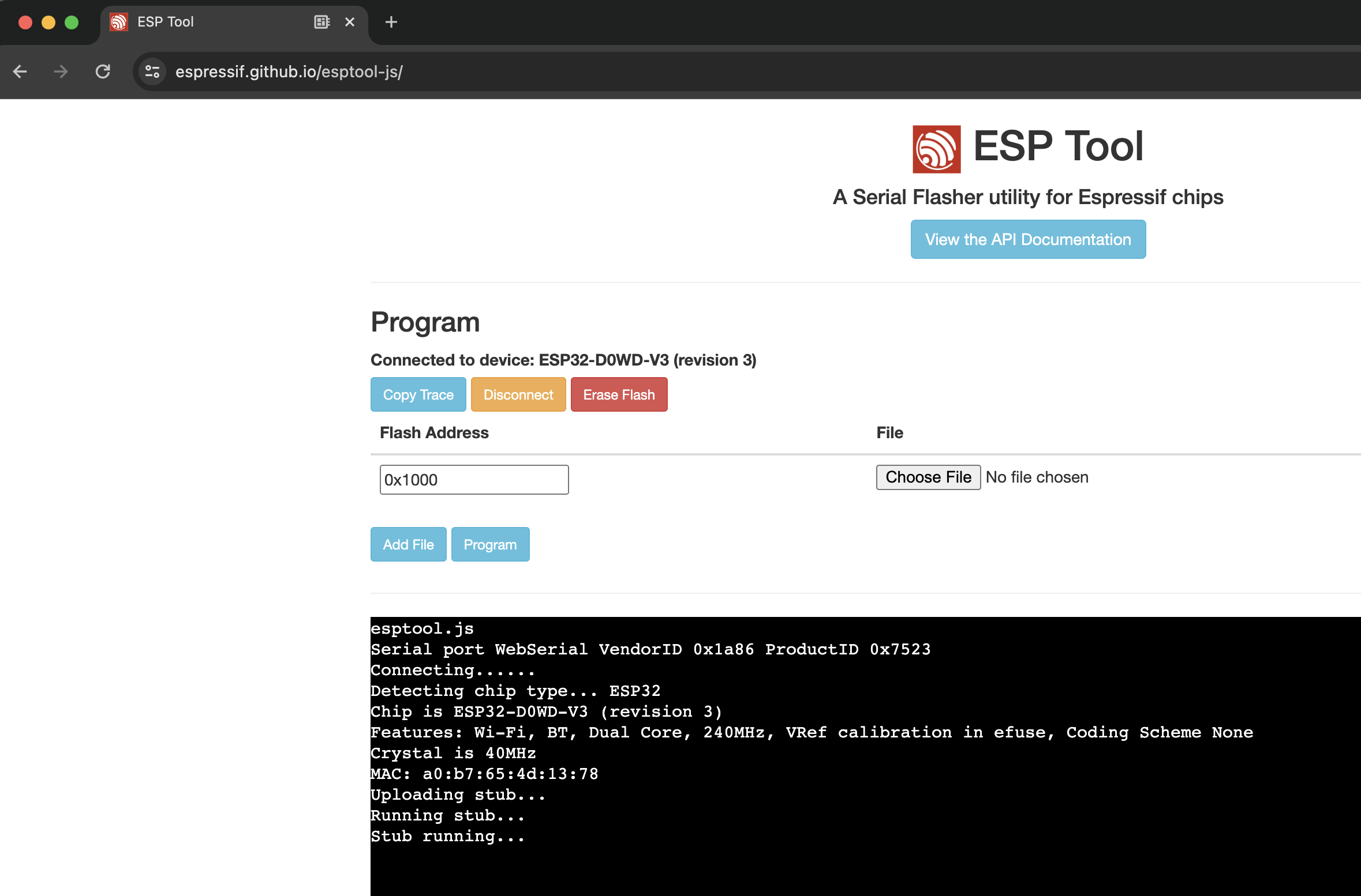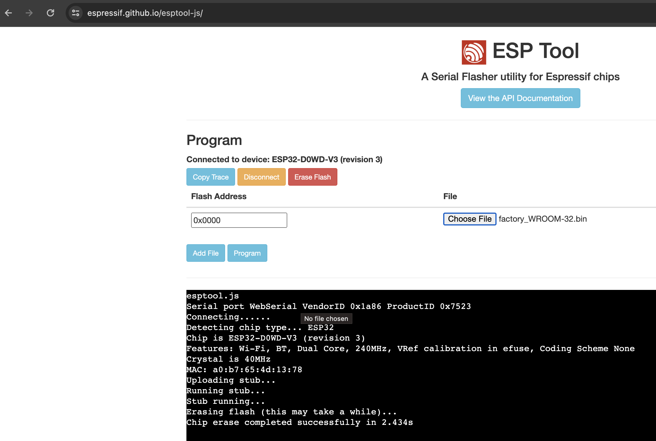 For this task we’ll use the online ESP Serial Flasher Tool.