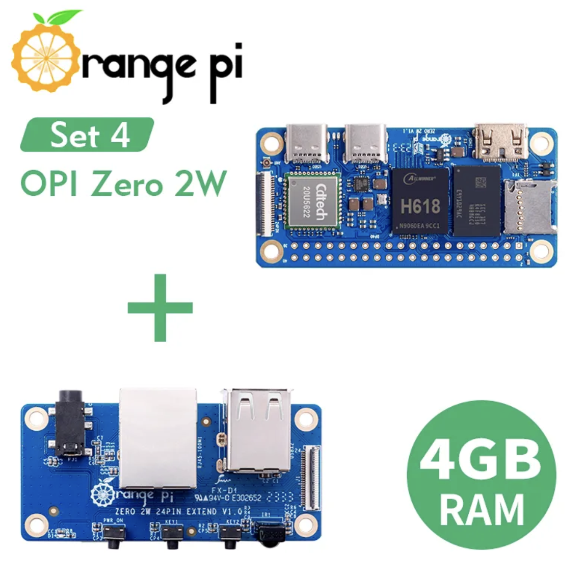 Orange Pi Zero 2W 4G+Expansion Board,DDR4 Allwinner H618 – WiFi+BT SBC Single Board Computer