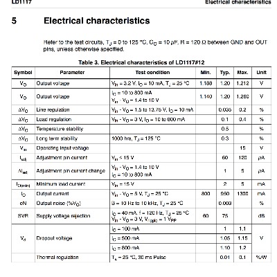 - Dropout Voltage: 1.2V at 800mA (typical)