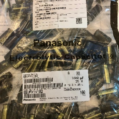 The Panasonic FM Series 1000µF 35V Aluminum Electrolytic Capacitor is available in a pack of six (Part # EEU-FM1V102). These radial-lead capacitors feature low impedance, high ripple current handling, and consistent performance within a 12mm x 25mm size. They are designed for mid-voltage circuits requiring substantial capacitance for filtering and power stabilization.