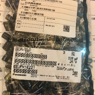 The Panasonic FM Series 220µF 25V Aluminum Electrolytic Capacitor is available in a pack of six (Part # EEU-FM1E221). These radial-lead capacitors feature low impedance, high ripple current handling, and consistent performance within an 8mm x 11.5mm size. They are designed for mid-voltage circuits requiring moderate capacitance for filtering and power stabilization in compact configurations.