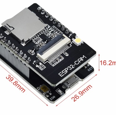 The ESP32-CAM ESP32-CAM-MB is a development board equipped with a 5V power input, featuring dual-mode WiFi and Bluetooth connectivity, and includes an onboard OV2640 2MP camera module. The board measures 39.8mm x 27mm and integrates a CH340G USB-to-serial converter for programming and communication. It is powered by an ESP32-S dual-core 32-bit LX6 microprocessor, adjustable from 80MHz to 240MHz, with 520KB SRAM and 4MB of flash memory. The module supports a TF card slot (up to 4GB), multiple GPIO pins, and interfaces including UART, SPI, I2C, PWM, ADC, and DAC. It operates in STA/AP/STA+AP modes and includes low-power sleep modes with a deep sleep current as low as 6mA. The board incorporates an A2SHB MOSFET LED driver, enabling efficient control of LED outputs, and supports customization options such as bulk orders and tailored configurations, as demonstrated by the availability of 100-unit custom batches.